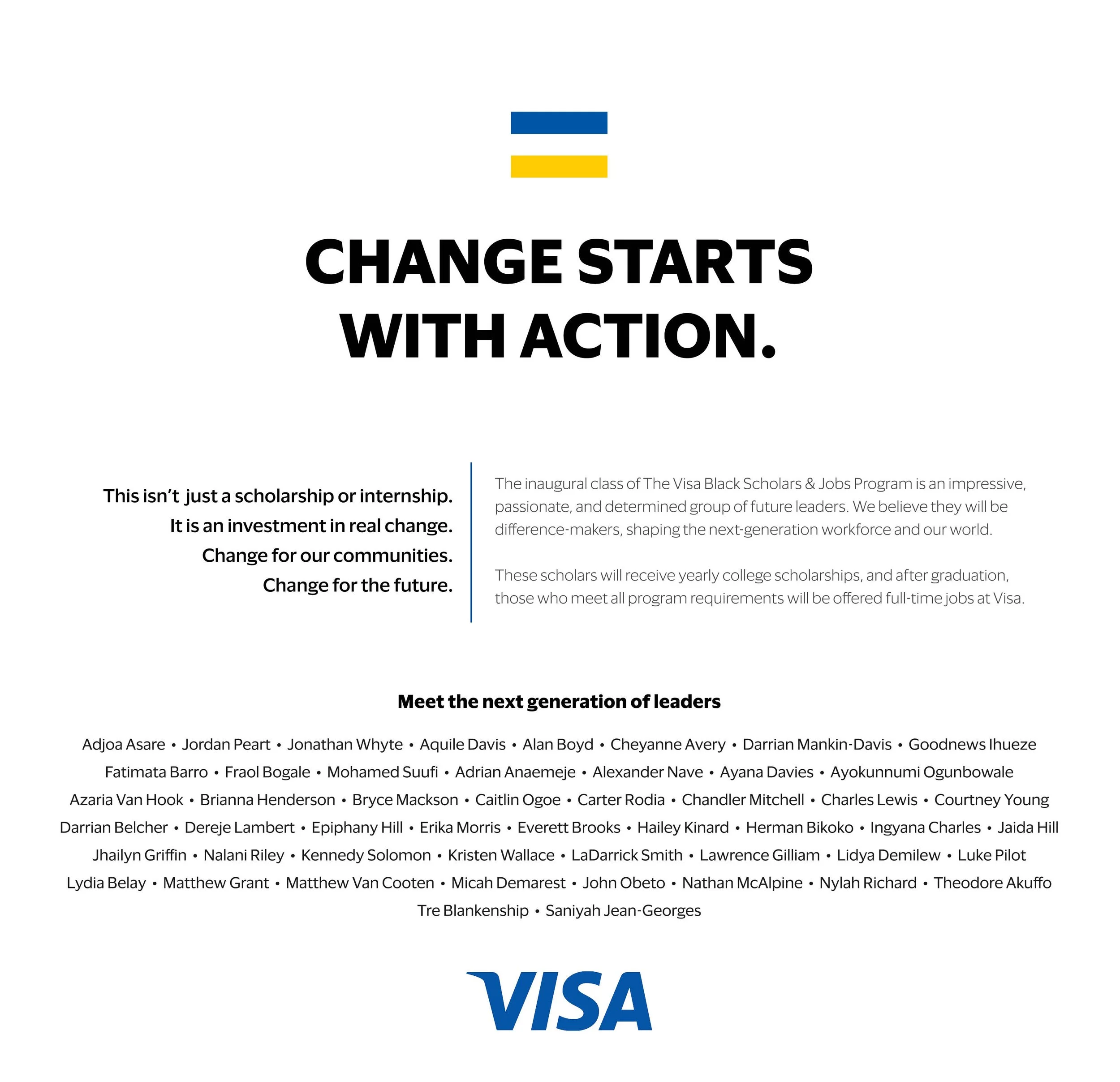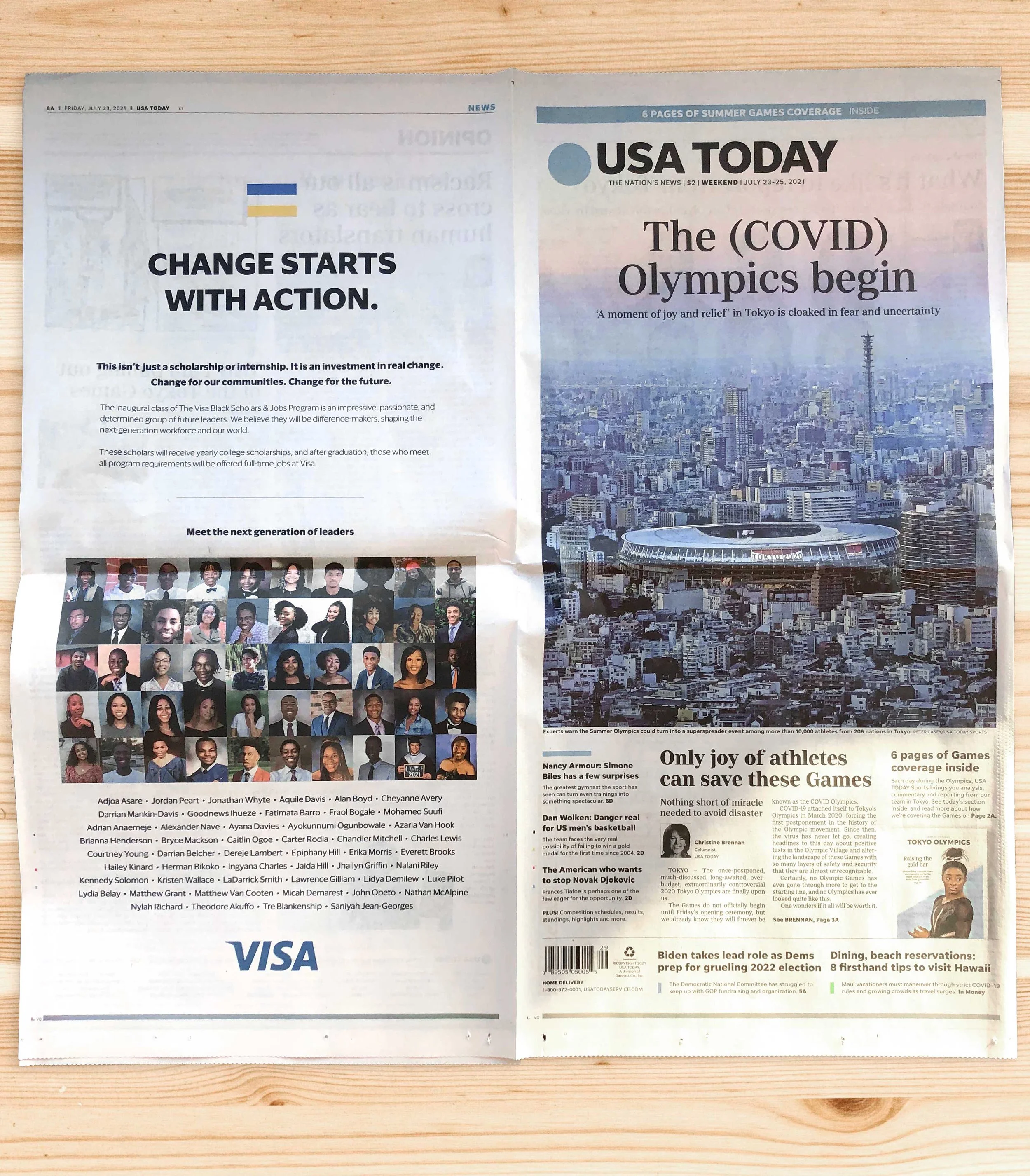Full page ads congratulating the next generation of Visa’s Black scholars program appeared in USA Today, Washington Post, Wall Street Journal and New York Times.