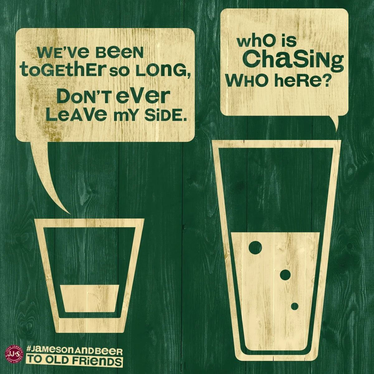 Whiskey and beer are a pair for the ages. Steeped in rich history together, Jameson wanted to bring awareness to how well their whiskey is paired with beer. This social campaign shines some light on the duo as old friends, meeting up to tell jokes at their local pub.